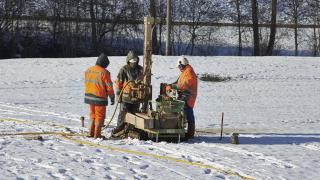 L'une des méthodes d'examen est la sismique réflexion (prospection sismique), une méthode par laquelle les ondes sonores sont déclenchées. Cela se fait généralement au moyen de petites explosions à une profondeur d'environ 10 à 15 mètres, dans certains cas aussi à une profondeur significative.